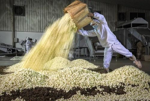 福州茉莉花茶窨制工艺是用特种工艺造型茶或经过精制后的绿茶茶坯与茉莉鲜花窨制花茶的传统工艺。福州地处亚热带,气候温和,雨量充沛,自然条件非常适合茉莉花生长,至今已有2000多年的茉莉花种植史。作为茉莉花茶的发源地,福州茉莉花茶窨制工艺也已有近千年历史。宋朝许多史料都记载了福州茉莉花茶采摘、制作、品赏的过程。清朝咸丰年间,福州茉莉花茶作为皇家贡茶,开始进行大规模商品性生产。 福州茉莉花茶原材料取自精制的绿茶茶坯和福州盛产的优质茉莉花,经过茶坯处理、鲜花养护、窨花拼和、堆窨、通花散热、收堆、起花、烘焙、冷却、转窨或提花、匀堆、装箱等10多道传统工艺程序精制而成。其中,鲜花吐香和茶坯吸香是茉莉花茶窨制的主要过程,而窨花拼和则是制作过程的重点工序。 根据茶叶独特的吸附性和茉莉花的吐香特性,经过一系列工艺流程加工窨制而成的茉莉花茶,既保持了绿茶浓郁爽口的天然茶味,又饱含茉莉花的鲜灵芳香。成品色泽黄绿透翠,汤色金黄清明;茶香浓郁清高,滋味鲜爽甘醇;旗枪交错杯中,形态优美自然。(福州市委宣传部 供图) |