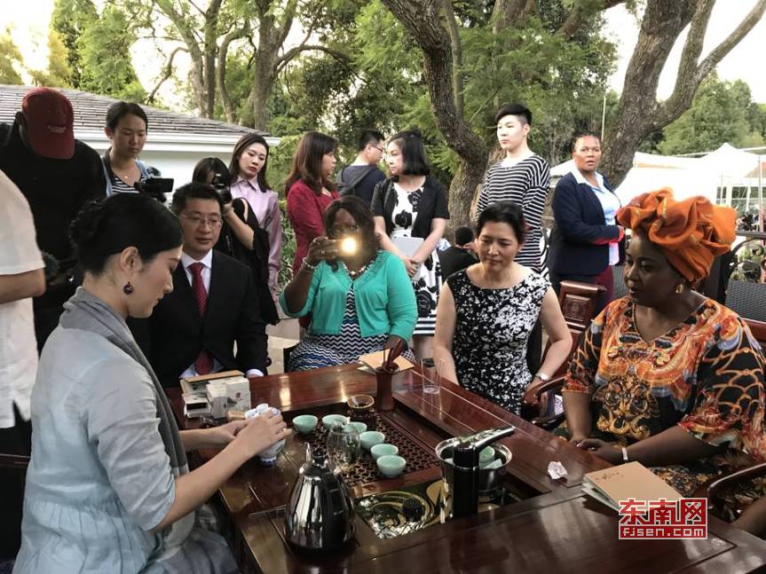 “海丝茶道”现场演出盛况 2018年1月25日,由福建省人民政府新闻办公室、福建省对外文化交流协会主办,中国驻约翰内斯堡总领事馆协办,全非洲中国和平统一促进会、全非洲华人妇女联合总会、福建省出版对外贸易有限责任公司、福建电视台综合频道承办的“海丝茶道”福建茶文化艺术展演在中国驻南非约翰内斯堡总领馆成功举办。 代表团与南非总统夫人恩格玛祖马互赠纪念品 南非总统夫人恩格玛祖马、南非非国大秘书长马哈舒勒、南非警察部副总监杰克博·祖曼尼、南非旅游部副部长伊丽莎白·塔贝特、南非宪法法院大法官卡梅伦、中国驻南非约翰内斯堡总领事馆总领事阮平,副总领事屈伯勋、任晓霞,全非洲中国和平统一促进会会长李新铸,各国驻南非总领馆官员、华人华侨社团侨领及代表、国外友人、媒体代表等近200位嘉宾出席了开幕仪式。 南非总统夫人恩格玛祖马同代表团一行品茶 中国驻约翰内斯堡总领事阮平在致欢迎词中表示,今年适逢中南建交20周年。在过去的20年中,中南关系取得了长足的发展,进入了历史上最好的时期。两国政治交往日益密切,战略互信不断加深,并经常举行高层次的互访活动。在两国关系的发展过程中,人文交流十分重要,这次活动正是促进两国人民加深互相理解的一部分。福建是海上丝绸之路的起点,这次艺术团带来了展现中国独特的茶文化的表演。 “海丝茶道”艺术团团长刘相骏在开幕式致辞中表示,中国是茶的故乡,福建则是世界茶产业的发源地。古代“丝绸之路”实现了东西方文明的第一次对话,从“海上丝绸之路”到“万里茶道”,再到今天的“一带一路”,从古至今,“茶”在文化交流中,发挥重要作用。希望通过这次活动,增进彼此的认知与友谊,与热爱茶文化人士共同携手促进中南文化交流,推动两国的友谊、两国的关系迈向更高、更远的境界。 南非总统夫人恩格玛祖马体验提线木偶 本次展演节目分为“茶源”“茶韵”“茶和”3个篇章,共9个节目。“茶源”介绍福建茶文化起源;“茶韵”体现中国茶之美、中国文化之美;“茶和”展现闽茶走向世界,和谐结缘,共融发展之道。表演形式涵盖歌曲演唱、舞蹈展示、木偶茶艺、书法创作、点茶茶艺等,既有客家擂茶、闽剧、木偶戏等彰显民族特色的茶艺表演,也有英式调饮茶茶艺表演,生动活跃,情趣盎然。其中,客家木偶戏是福建省级“非遗”保护项目,茶艺也是古老的传统文化,将这两者结合、大胆创新,吸引了全场的目光,受到现场嘉宾的一致好评。 南非总统夫人恩格玛祖马用毛笔书写“南非”二字 展演前还举行茶文化讲座及品茶会。制茶大师张笔清先生现场讲解有关茶叶历史知识,并泡制国礼级茗茶邀请嘉宾品茗。表演中途穿插互动环节,推介福建茶名品,并进行现场赠茶、品茶活动。 约翰内斯堡展演结束后,“海丝茶道”艺术代表团还将赴开普敦进行展演,并与开普敦华星艺术团进行交流、切磋。 |