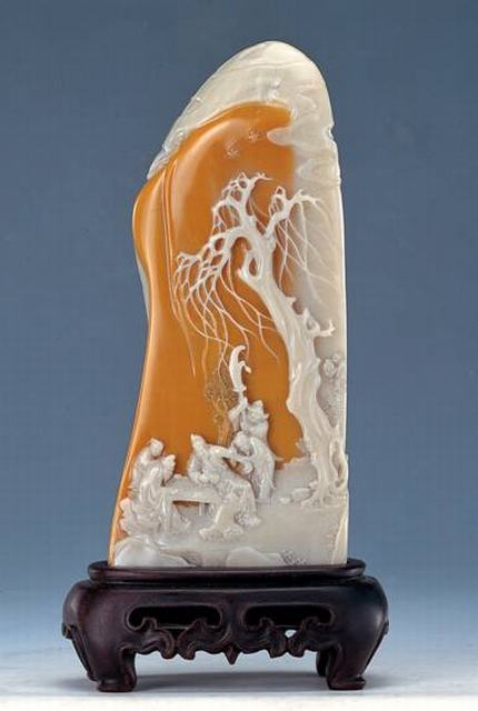 寿山石雕是传统的民间雕刻艺术,以产于福州北部山区北峰的寿山石为材料,通过特殊技艺制作出供人玩赏的小型雕刻。寿山石雕技艺主要流传在福州市晋安区鼓山、岳峰镇、象园、王庄街道和寿山乡。寿山石是世界上最珍贵的彩石之一,独产于福州市晋安区北峰山区,其质地精致细腻,莹彻通灵,色彩绚丽,形、色、质、纹俱佳,无愧为“八闽名石”、福建“省石”和中国“国石”候选石的称号。(福州市委宣传部 供图) |