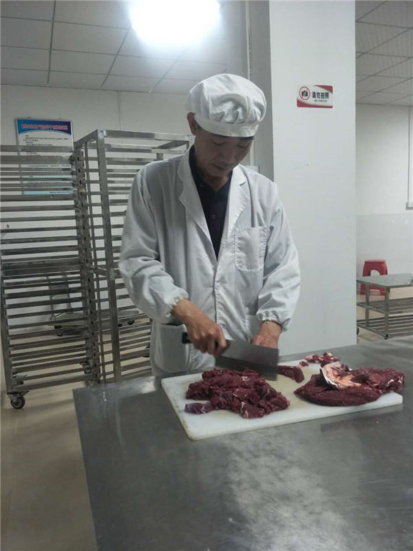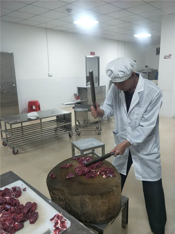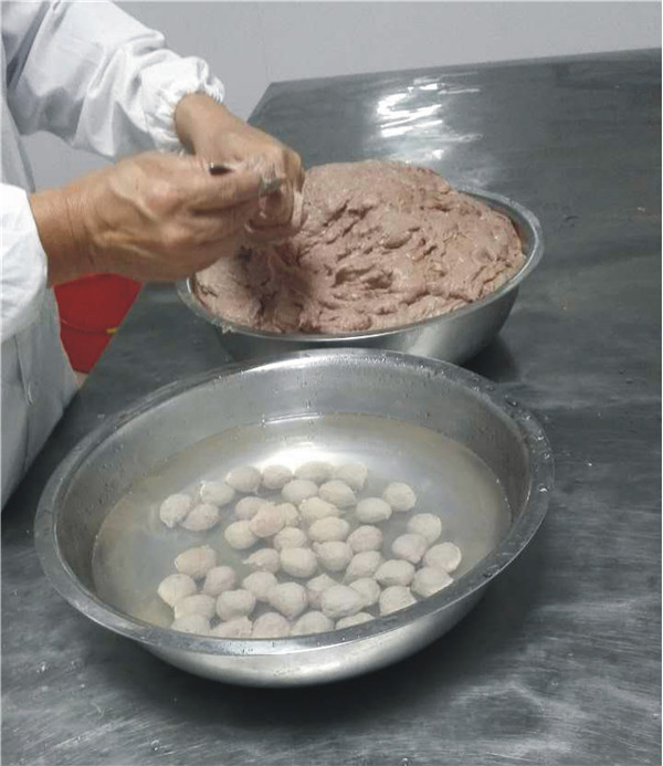 永定牛肉丸系闽西“八大鲜”之一,为永定特色传统美食,是永定就地取材的纯生态绿色食品,备受全国各地美食者的青睐,销售市场大,社会与经济效益好。 永定牛肉丸的制作工艺早在清代就传入永定,在民国《永定县志》实业志中已有永定牛肉丸的记载:木锤牛肉微搀(应为“掺”)粉作丸之,永定牛肉丸味极鲜。《永定县年鉴(2006-2010)大事记记载》:2008年11月22日,由厦门大学客家研究中心、台湾“中央大学”客家研究院共同主办的海峡两岸客家美食论坛暨美食大赛在厦门举行,永定“牛肉丸”等客家菜获“特级金牌菜”称号。 永定牛肉丸的传统制作方法是,选取新鲜不注水的牛腿肉,去筋膜肥肉,均匀切成一厘米厚的层肉,用干布吸干水分,然后制碎并反复拍打成浆,使肉色转为鲜红柔韧,加入适量精盐,永定地产精木薯粉或蕉芋粉,反复揉搓,捏成一粒粒拇指大的肉丸,然后放入温水中成形,捞起,放入锅中水煮10分钟即可。食用时,放入盛有骨汤的砂锅中,用文火煮,待肉丸蓬松胀大,加入少量胡椒、葱花、味精等调味品即可食用。永定牛肉丸营养价值高,味道鲜,老少妇幼皆宜。 牛肉丸原材料牛肉 牛肉丸主要配料木薯粉 拍打后的牛肉浆 牛肉浆制丸 温水中成形的牛肉丸 成品牛肉丸和餐桌上的牛肉丸 此照片是张健民师傅在给牛肉除筯、除膜 张健民师傅在捶打牛肉 |