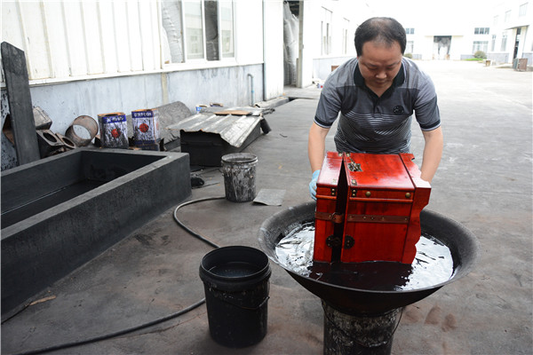 光泽是闽北古文化发祥地之一。这里山清水秀,盛产木竹。生活生产在这里的祖先们勤劳智慧,他们利用这里的自然条件,用木竹制作各种各样,各具特色的生活生产工具,至今还具有使用价值和观赏价值。传承古代的制作工艺,用传统手工制作而成的各种格式仿古箱包,再现了古代人的智慧,呈现了其使用价值,审美价值和文化价值。 光泽县企业生产仿古箱包,产品全部出口,远销欧美、中东等国家和地区。“光泽仿古箱包传统制作技艺”于2014年10月被南平市政府公布为第五批市级非物质文化遗产项目名录。(南平市委宣传部 供图) 仿古箱包水染着色。(高群 摄) 饶仲根在指导仿古箱包传统制作技艺。(高群 摄) 手工制作仿古箱包。(高群 摄) 制作好的仿古箱包样品。(高群 摄) |