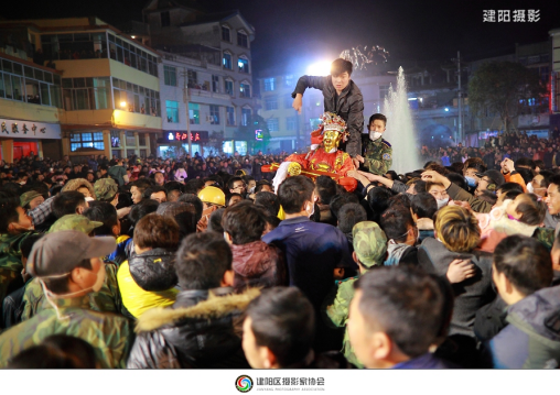 “祖公老佛”原系瓯宁县西乡里擎天岩庵得道高僧,法号道悟,修成正果坐化圆寂本庵,因俗姓祖而被尊称“祖公老佛”。传说因“祖公老佛”灵感,民众“有求必应”而威名日隆,备受十里八乡人们信仰和尊崇,并被列入当地民俗庙会花灯序列,安排在正月廿一日。 “祖公老佛”庙会习俗。(郑素容 摄) |