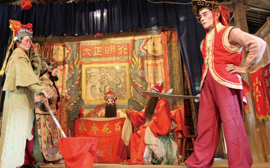 南剑戏又称乱弹,也叫土京戏。清代从江西传入,流行于峡阳、宝珠、高坪一带。南剑戏角色分正生、小生、老生、正旦、小旦、老旦、大花、二花、小丑等,素有“九角头”之称。南剑戏内容以反映宫廷的历史戏居多。 2008年,峡阳南剑戏被列入第二批南平市级非物质文化遗产代表性项目名录。(南平市委宣传部 供图) |