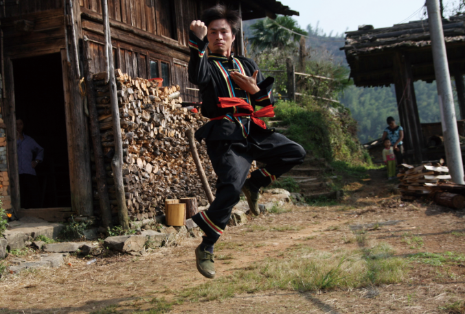 邵武市桂林乡盖竹村葫芦潭是一个偏僻的畲族小村落,地处福建、江西两省交界处,为抵御匪寇,免受欺侮,村中男子从小便学习武术。葫芦潭畲族武术起源无考,但至迟于清代就已存在。其招式大多源于日常生活、生产,所用的武器,不是刀枪剑戟,而是农家常用的生产工具和生活用品。 2008年,葫芦潭畲族武术被列入第二批南平市级非物质文化遗产代表性项目名录。(南平市委宣传部 供图) |