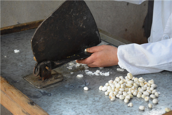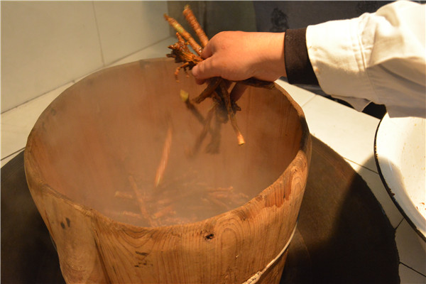 清朝初期,江西南城人在光泽城区开设中药店达十八家,带来了“建昌帮中药饮片加工炮制技艺”,他们能医能药,既当老板,又当药工,既当师傅,又带徒弟,口传身授,涌现出余春霖等享誉省内外的中药加工炮制大师。 “建昌帮”中药加工炮制技艺的精髓是其独特的炮制技艺可以归纳为“工具辅料土特,工艺取法烹饪,讲究形色气味,毒性低疗效高”四句话。加工工具刀创齐全,特色工具多,切药刀与众不同,有具把刀,面大、线直、刃深、吃硬、省力,一刀多用及切片斜、薄、大、光等特点。 “建昌帮”中药加工炮制技艺于2019年被福建省政府公布为第六批省级非物质文化遗产项目名录。 切半夏片,刀的形制是建昌帮特有的。(高群 摄) 余松柏按古法炮制中药材。(高群 摄) 蒸制药材。(高群 摄) |