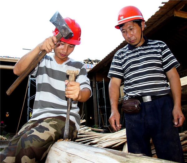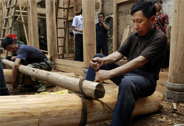 闽北古民居的建筑特色源于徽派建筑艺术,当今要保护好古民居,就需要保护传承好闽北古民居营造技艺。闽北古民居传承营造技艺的主要特点,是用于损坏古建筑物的纠墙,按原物制作柱、梁、枋、窗、门、翘角、斗拱、雀替、藻井、古戏台、古廊桥、庙宇等土木结构的建筑物原样。要仿古逼真,因而传统古民居营造技艺是关键,在维修、再建古建筑物中,门窗制作不能用铁钉,胶板不能用胶水,只能用热砂炒制出的竹钉。按此技艺,维修复原后的古建筑物,又可历经数百年的自然灾害侵袭,木结构基本不松动,不倒塌,不毁坏。 “闽北古民居营造技艺”于2017年1月被福建省政府公布为第五批省级非物质文化遗产项目名录。 弹好了墨线就要在柱子上凿孔,小毛学的有板有眼。(沈少华 摄) 工友在铺瓦板。(沈少华 摄) 立柱前的准备,这种捆绑相信现在很多人没见过。(沈少华 摄) 齐心协力竖立住。(沈少华 摄) 一个墨斗,一只眼睛,能描绘出建筑的蓝图。(沈少华 摄) |