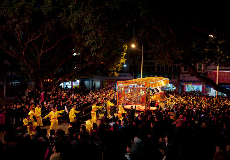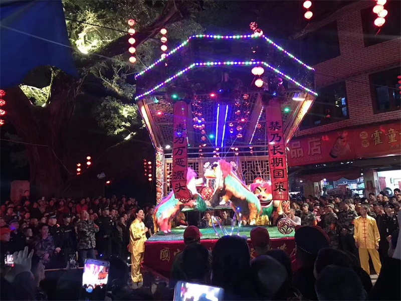 霍童“二月二”灯会的由来,可追溯到隋朝年间。据史料记载:隋谏议大夫黄鞠为避隋炀帝迫害,迁徙咸村,后与早年定居石桥村的姑丈朱福易地而居。为报答姑丈情谊,就在每年农历二月初一姑丈诞辰之日举行灯会活动。白天表演高跷,傍晚举行纸扎、铁枝、线狮、舞龙等游艺。至明正德八年(1513年)按“二十里排”各甲办灯会,发展到霍童全村四境每境表演一个晚上,称为“小迎”;逢五年一轮,各境重复举行一次称为“大迎”。再后来又发展到霍童村四境各姓氏以“堡”为表演单位参与。每逢灯节夜晚,千盏迎灯,五彩缤纷,万人空巷。八方来客,热闹非凡。各姓举着写有“黄堡”“章堡”“陈堡”的灯笼为前导,有灯兆丰年、天下太平之寓意。(宁德市委宣传部 供图) |
