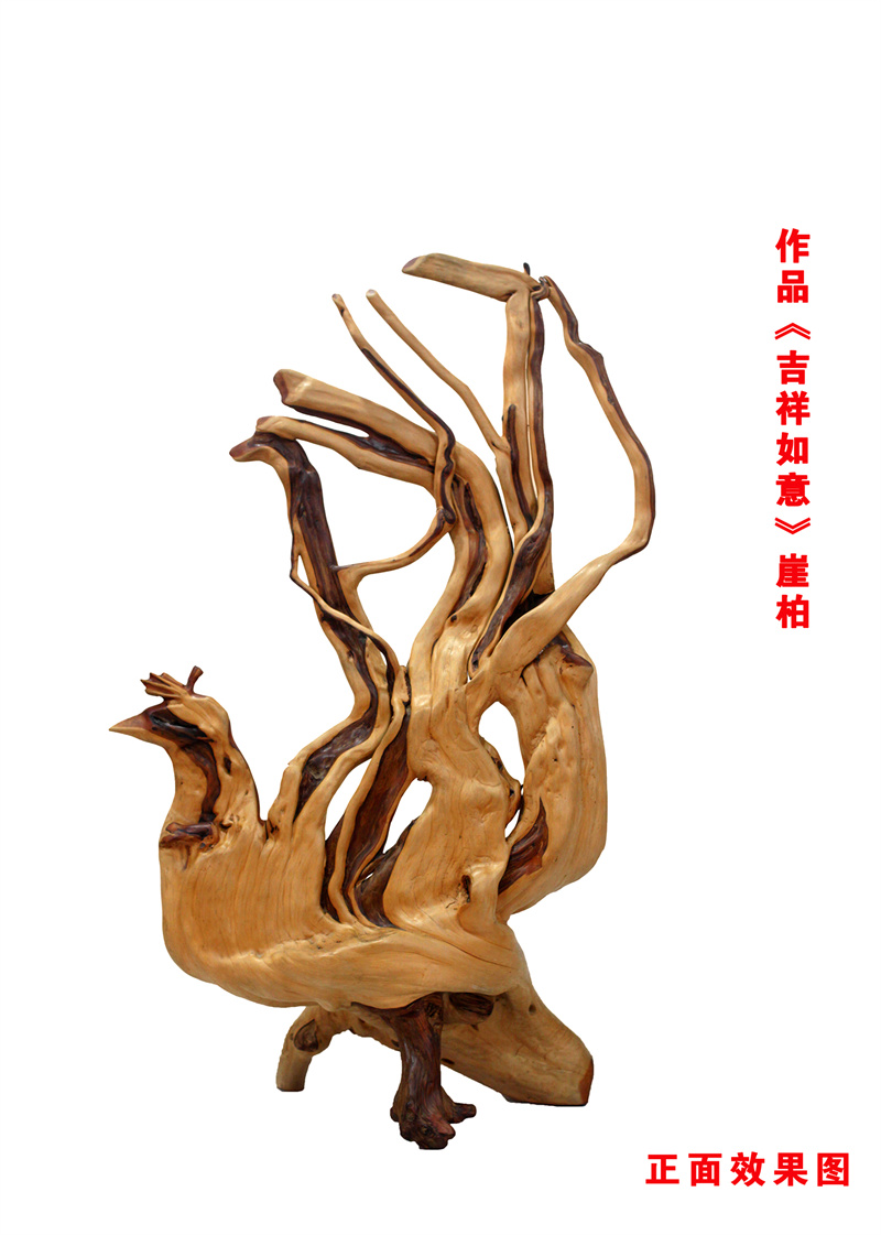 闽东传统根艺扎根闽东山区,历史上工艺多模仿古代木雕作品进行创作。完成一件作品从根材的审定、浸泡或烧煮、剥皮和清洗到定向定位定型、配座、磨光、着色、上漆,每一道工序流程都严格把关。闽东根艺的特征是立意新颖,选材严谨,气势宏大,野气奇逸,多用传统古法工艺处理,给人端庄凝重、古朴高雅的感觉,且无化学色料副作用,地方特色显著。以“不是古董,胜似古董”为艺术理想和技艺导向,秉承古法工艺制作,十分讲究,精工细作,古香古色,手工含量高。闽东根艺品的形象大都表现在“似与不似之间”,甚至有的比较夸张、抽象,多以奇、怪、巧的造型来震撼人的心灵,强调作品的神似形式和内含意蕴,源于自然,高于自然,从而突出自然美和想象美。(宁德市委宣传部 供图) |
