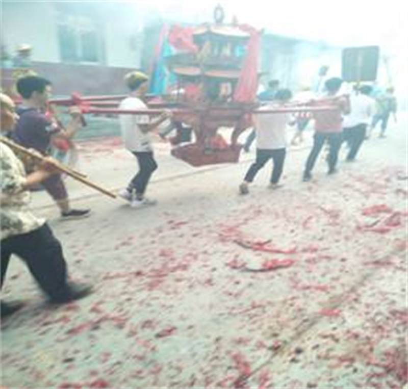 薛公信俗是古田县东北部上万人尊崇的一项重要民俗文化活动。信俗分布永安、渭洋、富达等四邻八村,远到薛后村外迁众多的古田城关、福州、厦门等地,甚至连新加坡、马来西亚每逢薛公庙会均会派人回来参与祭拜仪式。薛公殿(或称薛连公殿)常年香火不断,该信仰习俗活动每年举行二次。第一次是农历正月二十一日,由郑姓值守,到古田临水宫请接香接火返回后协同薛公神像巡游佑助五境村庄。第二次是农历七月七日,由卓氏值守,既到临水祖庙又到平湖钱岭连公殿二处请香接火后一同巡游全境。薛公信俗体现了民众禳灾纳吉,祈祷安康社会的美好愿望。具有凝聚人心,留住乡愁,促进社会和谐的现实意义。2018年9月,薛公信俗被宁德市人民政府批准为第六批市级非物质文化遗产名录项目。(宁德市委宣传部 供图) |