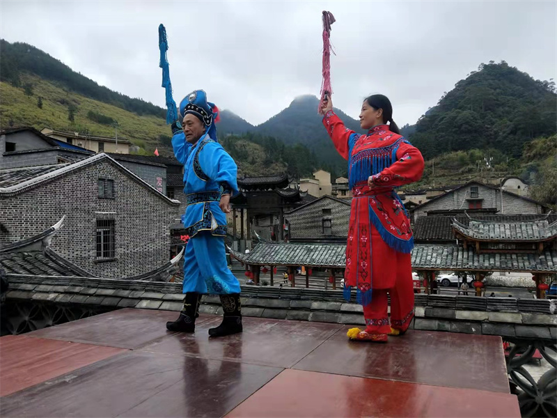 屏南乱弹戏2007年被列入第二批省级非物质文化遗产名录。屏南县乱弹戏被称为“戏苑怪味果”,有“中国戏曲活化石”之美誉。它起于明末清初,是伴随着雅部的衰落而兴起的花部中的一种唱腔。清中叶传入屏南,清道光十年,在寿山村以苏兆岁为班主,聘请闽浙赣三省乱弹名艺人成立的“三省福”乱弹班最为出名,传承至今已有200多年。(宁德市委宣传部 供图) |