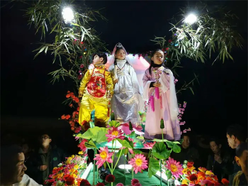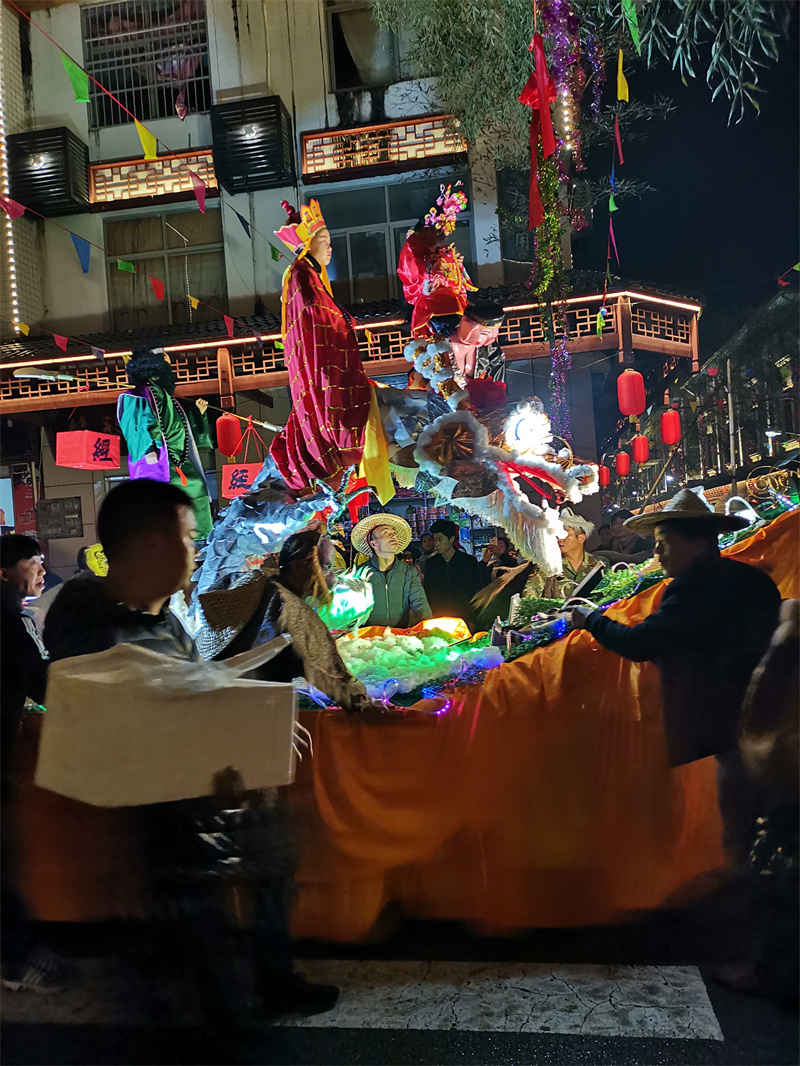 铁枝又称“抬枰”“彩枰”,是闽东一带节庆巡游活动中的一种民俗表演形式,与“抬阁”“飘色”相类似。屏南双溪铁枝主要流传于福建省屏南县双溪镇,表演时以数名儿童扮演古装戏剧人物,或坐或立,固定在木台铁架上,根据剧情组成各种精彩的造型,由人抬着行走。双溪铁枝造型每一架高3至5米,三层或五层不等,由8至16名青壮年扛着前行,此外还有乐队、鼓手、灯光、指挥等,共同组成一支巡游队伍。 双溪元宵灯会以铁枝表演为主体,同时还有舞龙、舞狮、花灯、鼓亭音乐等表演,游行队伍声势浩大,前呼后拥,观者如潮。过去双溪民间的铁枝表演一般在节日、庆典、神诞、庙会时举行,现在多数地方将表演日期固定在每年正月十三至十五日。 屏南双溪铁枝2008被列入第二批国家级非物质文化遗产名录。屏南县乃至闽东民俗文化的集中体现,具有独特的历史学、民俗学和社会学研究价值。(宁德市委宣传部 供图) |