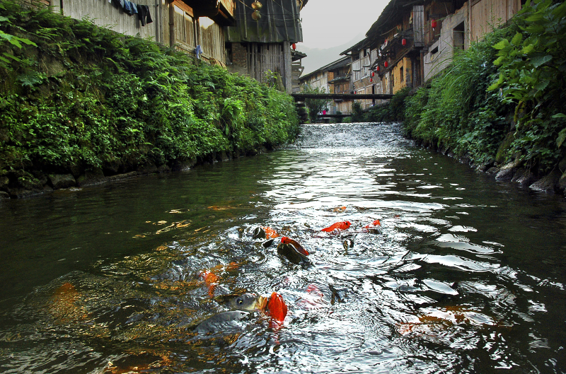 浦源鲤鱼溪人鱼和谐相处已有800多年的历史。村溪有上万尾各色鲤鱼,大者三四十斤,群鱼见人影而动,闻人声而聚,人鱼同乐,奇妙无比,令人流连忘返,因而得名“鲤鱼溪”。 鱼冢:当鲤鱼自然死亡后,村人将它们安葬于鲤鱼溪溪尾的鸳鸯树下,将旁边的田地取名为“鱼陵”,意为鲤鱼的属地,给鱼墓取名为“鱼塚”。 鱼葬礼俗:鱼葬礼俗自郑氏八世祖晋十公苦肉计护鱼开始,就成为村里重要习俗,当鲤鱼自然老死或因其它变故死亡,村人都说鲤鱼升天了。于是由村里德高望重的老人将它们送到鱼冢安葬,并燃香、烧纸钱、放鞭炮,并拜读“鱼祭文”,相似人的葬礼。(宁德市委宣传部 供图) |
