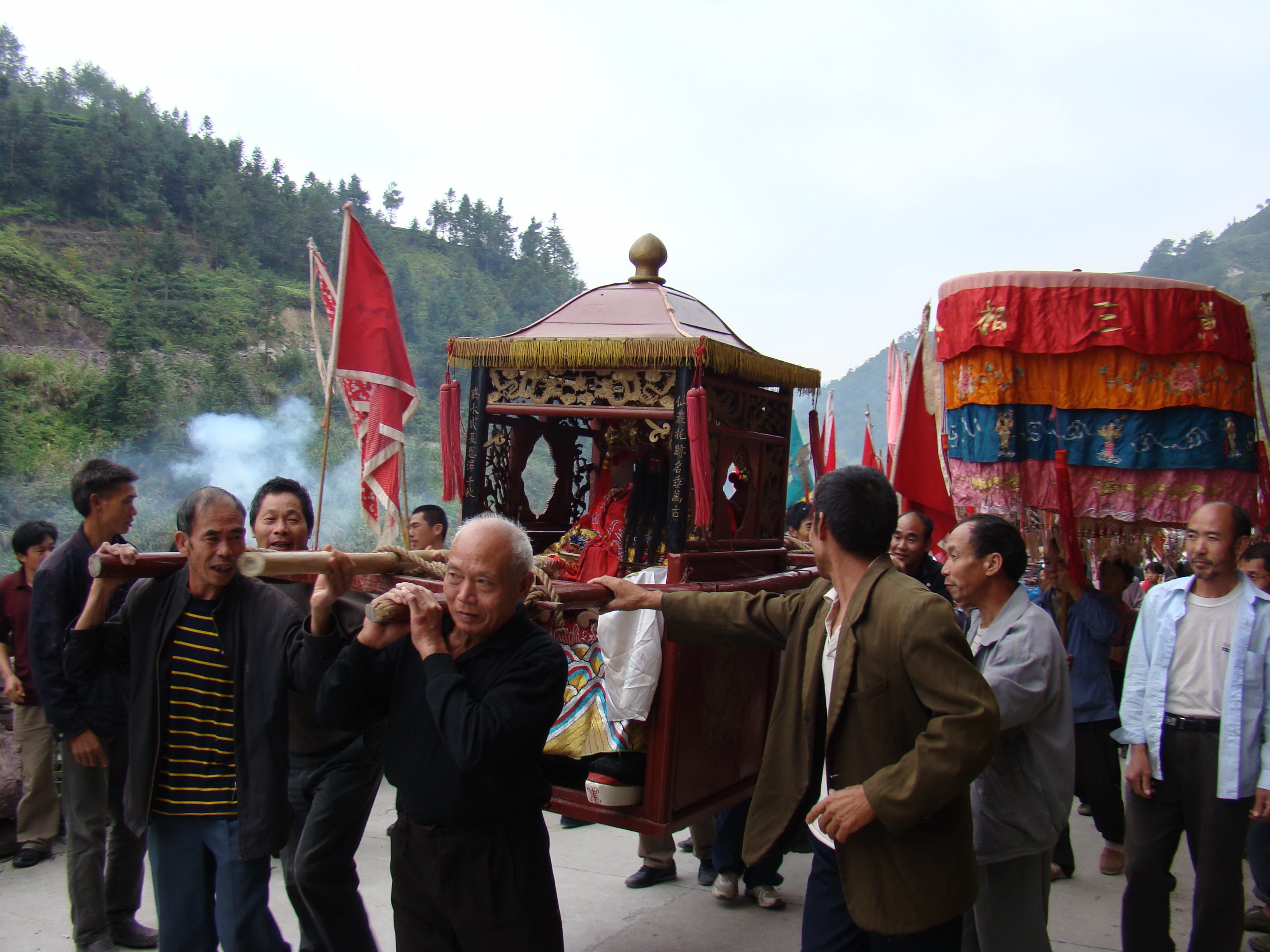 黄山公,原名黄槐,寿宁县韶托村人,北宋政和二年(1112年)进士,任徽州尹。为拯救数十万徽州灾民,他冒着身家性命危险,下令所辖州县开官仓放粮赈灾。为了避祸,他弃官归隐故里,改名为黄山。《福建通志》、《福宁府志》、《寿宁县志》等地方志均有记载其史迹。 黄槐辞官为民,一生积德行善,扶正祛邪的民本理念倍受民间敬仰,其庙宇遍布闽东北、浙西南,信众达数万之多,祭祀活动在邑内千年传承。百姓尊称之黄山公、黄三公、黄山相公。 2007年,“黄山公信俗”被寿宁县人民政府公布列入第一批非物质文化遗产名录,2012年,列入宁德市第四批非物质文化遗产名录。目前,该项目已列入福建省第五批非物质文化遗产代表性项目。(宁德市委宣传部 供图) |