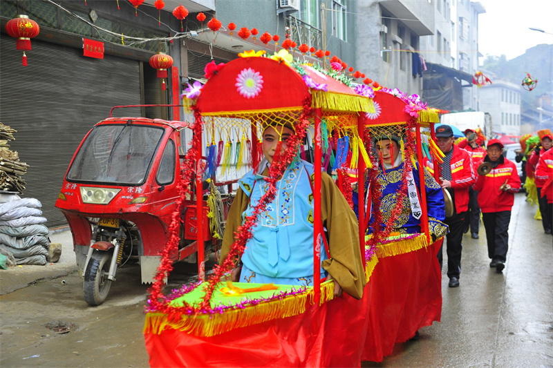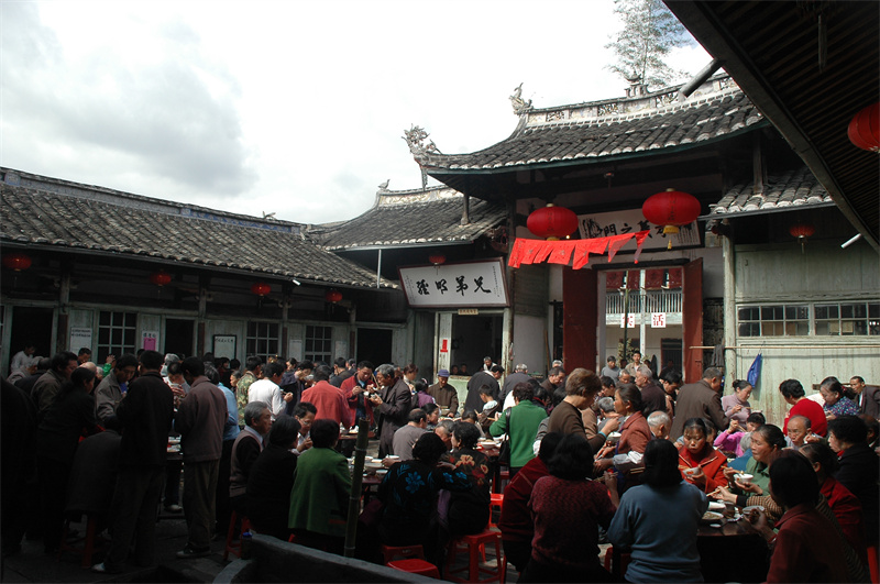 南阳“元宵福”是寿宁县南阳镇村居民众在元宵期间的民俗祈福活动,伴随村民走过了千年的历史。 “元宵福”的产生与形成于一个传奇而又真实的故事。据《龚氏宗谱》记载,明洪武三十一年(1398年),龚氏第九世孙龚子杰奉旨负责押运粮食到北京的宛平县。运粮船只行至江苏扬子江时,遭遇狂风巨浪,眼看就要被掀翻。这时河神晏公,平息了这场风浪,化险为夷。龚子杰顺利完成了任务,受到了朝廷的嘉奖并授官带。为了感恩河神晏公的护佑,龚子杰回到南阳,建造晏公神庙一座,在每年元宵期间开展祭拜祈福四季平安的民俗活动,“元宵福”由此而来。 “元宵福”早期以龚氏宗亲为主,后扩大到其他各姓。活动历时七天,由村中每年祈选担任福首,村里的南阳龚氏管委会,负责参与日常事务管理。活动主要场所在南阳镇龚氏祠堂。周边群众参与活动热情和积极性极高,人数众多,是南阳元宵福一直以来传承繁荣兴旺的根本。元宵祈福的民间节目丰富,有珍藏于民间绝活如吃瓷杯、吞筷子、搭九楼、驼八仙、过火坑、乡人傩等传统节目。民谚“一出元宵一出戏”,道尽了元宵祈福热闹非常。。(宁德市委宣传部 供图) 花船队 品尝馒头 祈福 迎神踩街队伍 在龚氏祠堂百家宴 |