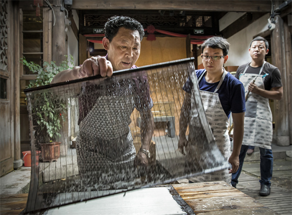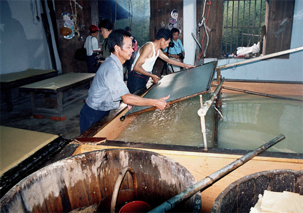 将乐传统手工造纸技艺历史悠久,据《福建通志》记载,将乐西山纸在唐、宋时代颇负盛名,迄今已一千多年的历史。清人郭柏苍的《闽产录异》说将乐纸以杨家山的京纸和龙栖山的西山纸最好。《中国书法工具手册》也载,将乐是我国最早生产毛边纸的地方之一。 将乐的毛边纸又数钟灵毓秀的龙栖山所产“西山纸”最负盛名。龙栖山地处将乐西南部国家级自然保护区内,海拔千余米,云遮雾罩,雨量充沛,盛产毛竹,有着丰富的原料资源,适应传统手工造纸业的生存与传承。 西山手工造纸技艺工序复杂,需经砍嫩竹、断筒、削皮、撒石灰、浸漂、腌渍、剥竹麻、压榨、匕槽、踏料、耘槽(打浆)、抄纸、干纸、分拣、裁切等28道工序之多,每道工序都丝毫马虎不得,否则就功亏一篑。优质西山纸细腻柔韧、光润洁净、吸水性强、久存不蛀,用于书法,吸墨性强,墨色固定而不褪色;西山纸既可用于修复、印刷古旧书籍,又是理想的书法用纸,作品装裱后古色古香,因此,自古以来深受用户的喜爱。当年,乾隆皇帝编《四库全书》时,命钦差大臣专程到将乐调纸印刷。清代以后,西山纸远涉重洋,畅销日本、新加坡、泰国、菲律宾、马来西亚等20多个国家和地区。1974年-1976年,国务院办公厅、国家出版局几次调运将乐毛边纸进京,印刷《毛泽东诗词》线装本和重要历史书籍。 西山手工造纸技艺是中国古老手工造纸技艺的缩影,对研究福建及中国传统手工造纸技艺的发展及传承,具有较高的历史、文化和科学价值。2008年6月,将乐竹纸制作技艺入选国家第一批非物质文化遗产扩展名录。(三明市委宣传部 供图) |