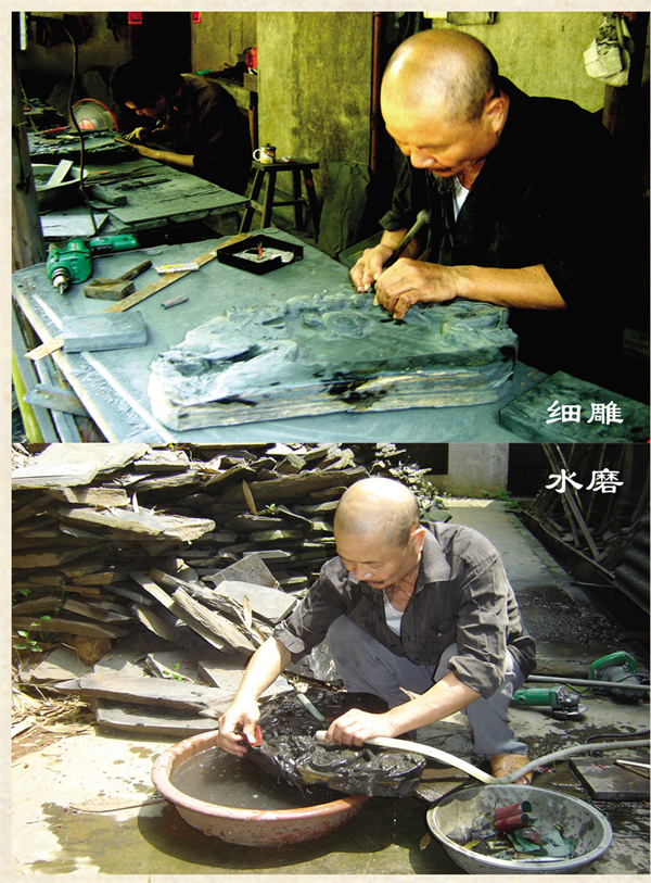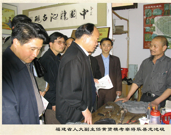 将乐龙池砚发祥于将乐县古镛镇,已有千年历史。将乐宋代古墓考古已发现有龙池古砚作为随葬品,与如今将乐县博物馆收藏的数方出土的宋代将乐古砚年代相近,同为国家珍贵文物。清乾隆年间修撰的《将乐县志》,对用于制作龙池砚的砚石作了明确记载。这种砚石产于县城之北,距城关十里的石门岭一带,此处和传说中仙人指点的龙池毗邻,故有“龙池石”之称。龙池村是宋代著名理学家杨时诞生地,所以“龙池石”又称为“龟山石”。 龙池砚历史悠久,久负盛名,与端砚、歙砚、洮砚、鲁砚等名砚均系我国著名古砚。龙池砚葆有“发墨细腻,墨色纯青,光亮耐用,不伤笔毫,写字作画,成色明晰,不易褪色,宜于长期保存”等品质特色,除了砚石绝佳外,还取决于传统的手工技艺,龙池砚制作工序繁杂,须经过选材、设计布局、切割外形、初磨、粗凿、挖孔、开槽、修边、细雕、打磨,上线,细部精雕,水磨等多道工序,使用的各类大小工具就达23种,颇为讲究。龙池砚制作成形后的技艺以龙图案的雕饰为主,延伸辅助技艺有30余个品种,如双龙戏珠、飞龙夺魁、巨龙飞腾、蛟龙戏水、玉龙吐云、墨宝龙池砚、群龙托乾坤、群龙献寿、金龙闹海……,寓意中华民族龙的精神,因此,龙池砚技艺颇具中华民族传统文化韵味。 精工雕刻的龙池砚成品光泽莹亮,细润光滑,轻轻敲击,其声如磬,被视为文房瑰宝,深受历代书画家和文人墨客的钟爱。清人郭柏苍的《闽产录异》记载:龙池砚“色微紫、似端之梅花坑。其质视端则绌、视歙实赢”,意思是说龙池砚砚石质地略逊端砚而优于歙砚。民国19年,将乐龙池砚与西山纸等产品一同参展于福建省第一次工商产品展销会;1958年,将乐龙池砚“圆形双龙戏珠砚”、“长方形梅鹊砚”、“小型粘刻马花式技艺砚”和“长方形刻花学生砚”等作品参加了建国10周年全国技艺美术展;同一时期,将乐龙池砚还被评为“福建省优质产品”。近年,将乐龙池砚也经常参与各种经济文化交流活动,并屡获殊荣,其中2001年,龙池古砚获三明市名特优商品交易会金奖;2002年,龙池砚“群龙托乾坤”获福建省首届民间艺术品博览会金奖;2004年,获福建省首届民间艺术精品暨第三届省民间艺术家评选活动铜奖;2004年,龙池砚“飞龙夺魁”获中国第三届国际民博会暨第二届中华(天津)民间艺术精品博览会金奖;2007年获“福建老字号”称号;2008年获中国(莆田)第三届海峡工艺品博览会银奖;2009年获准实施国家地理标志产品保护;2009年被福建版权局列为“福建省版权保护重点企业”。 龙池砚是一项颇具传统文化内涵的手工技艺,具有很高的技艺美术价值;同时,对研究福建及中国砚台的发展及传承历史,具有较高文化和科学价值。2005年10月,将乐民间龙池古砚制作工艺入选福建省第一批非物质文化遗产名录。(三明市委宣传部 供图) 福建省人大副主任黄贤模考察将乐县龙池砚 技艺传承人张旺金龙池砚陈列室一角 将乐龙池砚传承人张旺金获福建省首届民间艺术品博览会金奖 龙池砚传承人张旺金在制砚中 细雕水磨 选材 |