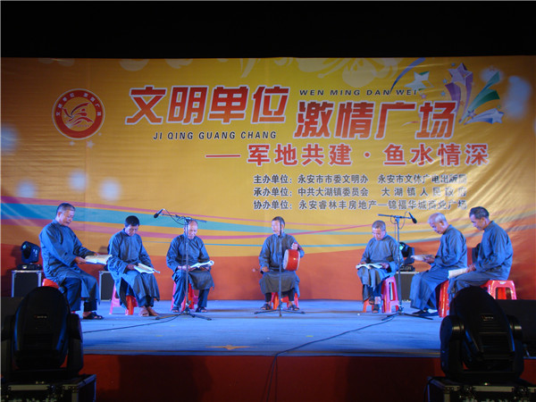 永安唱花源于永安大湖新冲村,流传到今已400余年。相传清初有一才子进京赶考,落榜后流落新冲村民主庙,受村人饭食,临走时把撰写的《花本》留下,此后“唱花”即在新冲扎了根,形成了古老的、独特的乡村文艺。 新冲的冲一、冲二、冲三、冲四4个村,每年正月初一到十五,白天迎神赶庙会,晚上聚会唱花。唱花在村中大户的厅堂上举行,厅堂正中摆上几张大桌长椅,桌上排满米粿茶点,果品佳肴,供唱花人享用。唱花唱的是永安话,但带有闽南的高甲戏腔,不同的场合有不同的花词,例如:迎神游街开始时唱“起神花”、送神时唱“送神花”、在游街过程中唱“行路花”、到佛堂时唱“佛坛花”、进门唱“入门花”、出门唱“出门花”、喝酒唱“食酒花”、盖房唱“架厝花”。唱词内容丰富,包含历史地理、人文礼仪、四时农桑等等,比如“架厝花”中有唱道:“主人住在好屋堂,四边金柱对金樑。樑头雕得金狮子,樑尾雕得金鸡对凤凰。”“食酒花”唱“主人造得好酒浆,未曾斟出满厅香。日间斟出写田契,夜间斟出请尊王”。体现了新冲人赞美自然,热爱生活的淳朴民风。 晚饭后,乡民们扶老携幼,赶往举办唱花人家的大厅。不一会,大厅上挤满了人。开唱时,唱花人面前摆上唱本,几十人异口同声,有唱有和,悦耳的歌声响彻乡村正月的夜空,通宵达旦。新冲人用唱花表达自己的情感,祈求新的一年风调雨顺,五谷丰登,老少安康,六畜兴旺。新冲村先人大多是清朝中后期从安溪、永春、南安等地移民来此的拓荒者,他们把闽南的种茶、养殖及其他耕作技术带到新冲,在漫长的岁月里,唱花习俗成了他们与当地人和谐相处的纽带。2009年5月,永安“唱花”入选福建省第三批非物质文化遗产名录。(三明市委宣传部 供图) 传承人在一起研习曲艺 存世曲谱和表演用鼓 永安“唱花”演出(图片由永安文化馆提供) 永安“唱花”演出(图片由永安文化馆提供) |
