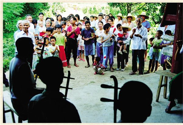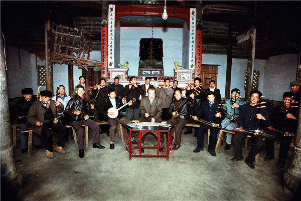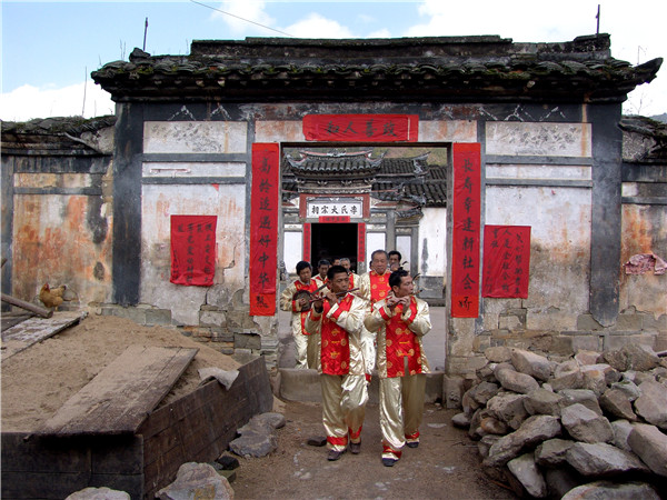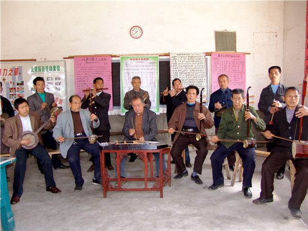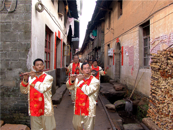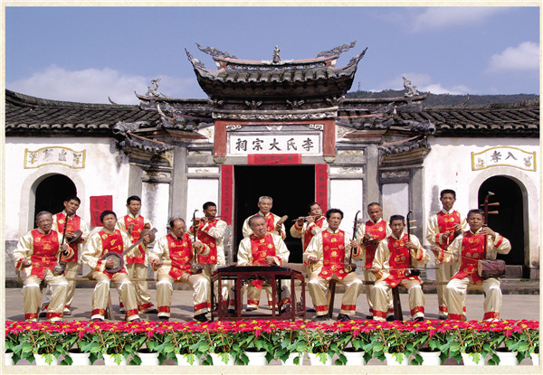 清流长校十番锣鼓,明永乐年间(1403——1424)由中原传入。 十番锣鼓“十”指其乐器多,“番”指其花样翻新。“十番锣鼓”开初只有铜鼓、哒鼓、大锣、小锣、大钹、小钹,后增加了碰铃、笛子、二胡、板胡、六角琴、杨琴等众多乐器。演奏人员分为打击乐、丝弦乐两组,乐队依序为笛子引路,丝弦乐居前,打击乐殿后。演奏时,技艺高超的笛子手决定乐队选择何种曲目,他用笛子送出一个音符,众乐手立即同步跟上。打击乐组的第一位是“十番锣鼓”的总指挥,他左手执铜墙铁壁鼓、哒鼓,右手握鼓棰,时而击铜鼓,时而击嗒鼓,时而敲鼓边,时而敲鼓檐,鼓棰有如蜻蜓点水,有板有眼,板眼分明,指挥着乐队演奏。其他演奏者多数由民间鼓乐班中的乐手和道观中的道士组成,其中也出了不少闻名的演奏师傅。如清代光绪年间江坊村的曲艺大师江回春,他对琴、笛、鼓手、鼓板无一不精;留坑村乐手童生以“一把二胡一台戏”出名,其扬琴独奏曾荣获清流民间曲艺演奏一等奖。他还收集、整理、编写了《民间曲艺集》、《十番锣鼓谱》各一集,对长校“十番锣鼓”的继承与发展起到重要的作用。 “十番锣鼓”有坐演奏和行进演奏两种方式,所以叫“摆十番”。常用的锣鼓谱有长流水(走马锣鼓)、起板锣鼓和过门锣鼓三大类,起板锣鼓用于开场,长流水用于较长的路途行进,过门锣鼓最为复杂,难度也大,它与曲调配合,时而穿插、时而过门,讲究紧凑、整齐的效果;采用的曲调很多,约有40余种民间小调。常演奏的曲目有:《八板头》《十杯酒》《怀胎》《瓜子仁》《玉米缨》《孟姜女》《打骨牌》《耍金扇》《闹五更》《春串子》。其中《八板头》俗称“浪琴调”,十番锣鼓一开始就奏这首曲调,以此曲进行和弦。丝弦乐器讲究四大线,即:上六线、何尺线、陈五线、四宫线。上六线相当于现在音乐的1~5弦,何尺线相当于5~2弦,陈五线相当于2~6弦,四宫线相当于6~3弦。也就是上古乐律中宫、商、角、徵、羽五音的演变。 过去长校每村都有“十番锣鼓”,最多时整个乡有一百多堂“十番”,仅江坊村就有十多堂,较大的村还延伸到家族,房房有“十番”,甚者把有否“十番”视为房族地位高低的标志之一。大凡逢年过节、迎亲贺寿、上梁入屋、扫墓祭祖、迎神出案、游族谱、抬龙灯等都用“十番”,特别是正月十五闹元宵,一条龙灯就配有一堂“十番锣鼓”,在群众生活中有着广泛的需求和深厚的基础。1956年,江坊村“十番锣鼓”队参加清流县文艺调演,其民间小曲《王婆骂鸡》荣获第一名。2007年5月,长校镇入选“福建民间艺术(十番锣鼓)之乡”名录。2009年5月,清流长校十番锣鼓,入选福建省第三批非物质文化遗产名录。(三明市委宣传部 供图) “摆十番” 摆十番。(王晓刚 摄) 乐队阵容展现 十番锣鼓乐队排练 十番锣鼓乐队排练 |