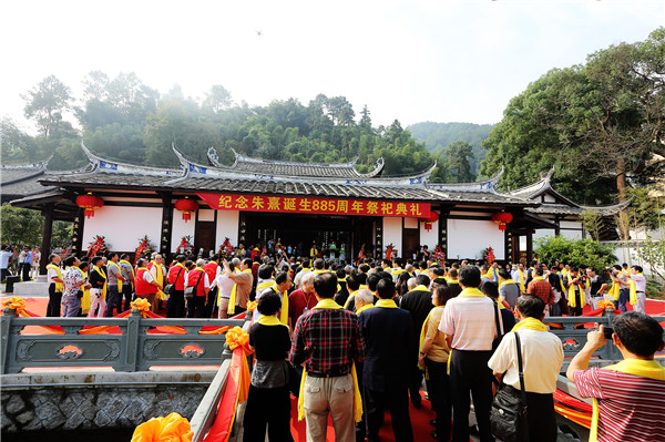 朱熹是南宋著名的理学家,理学之集大成者,中国封建时代儒家的主要代表人物之一。尤溪是朱熹的诞生地,朱熹祭典始于南宋嘉熙元年(1237年),尤溪县令李修捐资在县城南的公山之麓修建文公祠、韦斋祠、半亩方塘和尊道堂等建筑,祀朱家父子,并备有专用祭祀乐舞,是集礼、乐、歌、舞为一体的综合性艺术表演形式。每年春秋及农历九月十五日朱熹诞辰日临近,尤溪县都举行以纪念朱熹为主题的朱子文化宣传周,举办海内外知名专家、学者朱子文化专题讲座、朱熹祭典、“朱子礼乐”会演等活动。 朱熹祭典在尤溪朱子文化园里的南溪书院隆重举行。世界朱氏联合会、台湾海峡两岸朱子文化交流促进会、中华朱子学会、上海儒学研究会、国内有关学者代表、内地朱子后裔代表、福建省内朱子文化研究机构代表与朱熹故里乡贤共同参加祭祀活动。 朱子祭祀大典在开祠仪式后进入初献——进香、酹酒;亚献──敬献花束;终献──奠帛、恭读祝文“三献礼”;恭诵《朱子家训》和向朱熹塑像敬献花篮等环节,整个仪程庄严肃穆。 朱子文化在当地根深叶茂,滋养着这块钟灵毓秀的土地,崇文尚学的优良传统源远流长,先贤圣哲的思想精髓,在中国的思想界、理学界、文学界都有广泛而深远的影响。朱熹后裔、朱氏子孙遍布海内外,因而在朱熹出生地尤溪举行“祭祀朱熹大典”,有其独特的意义与价值,保护开发好“祭祀朱熹大典”,能吸引更多来自海内外的世界朱氏联合会成员、朱子文化研究学者,让朱子文化得到更好的挖掘、传承。2011年12月,朱熹祭典(尤溪)入选福建省第四批非物质文化遗产名录。(三明市委宣传部 供图) |