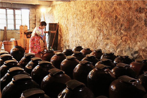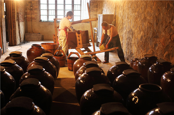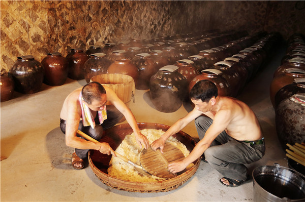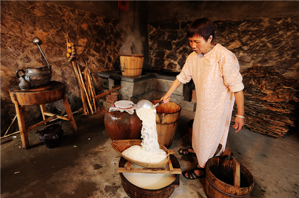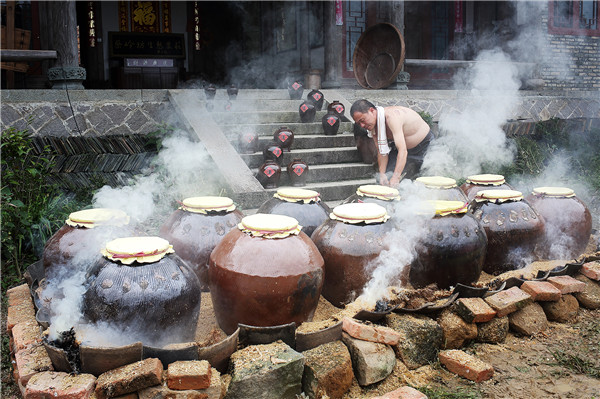 尤溪桂峰黄酒酿造技艺流传至今已有700多年历史,据桂峰《蔡氏族谱》记载,早在南宋淳祐七年(1247年),蔡氏祖先就已经用传统工艺酿造出佳酿美酒,并把黄酒酿造方法以文字记载下来,由此定下了“传宗不传外”的规矩。随着桂峰人到各地经商,桂峰黄酒远销省城福州和当时汀州府地界。 桂峰黄酒的出现和传承与地域人文有着密切的关系。美酒自古与文人有不解之缘,正所谓酒里乾坤,壶中明月,把酒临风,赏心乐事。尤溪县是理学大师朱熹的诞生地,而桂峰全村334户,1200多人,都是宋代名臣蔡襄的后裔。据民国《尤溪县志》载:宋朝淳祐年间,北宋名臣蔡襄之九世孙蔡长发现桂峰山川俊秀,有“飞凤衔书”之灵气,就在此结庐而居,耕读传家,定村名为“岭头”。从此,蔡长带领儿孙开创桂峰七百多年的辉煌历程,谱写蔡氏灿烂篇章。 桂峰村生态环境优美,历史文化积淀厚重,是尤溪县“打造朱子文化城”的重要基地,而桂峰黄酒酿造技艺是展现朱子文化的一张“名片”。目前已注册有“蔡岭红”商标,是尤溪县“朱熹公祭大典”的指定用酒。桂峰的黄酒酿造技艺体现了重大的历史价值,桂峰人代代酿酒、品酒,把历史文化溶入酒中,创造了酒与历史智慧,酒与文化艺术相结合的范例。如今,桂峰黄酒酿造技艺已传至第31代,传承人成立了尤溪县洋中镇蔡岭坊家庭农场,专注于桂峰黄酒酿造传统技艺的传承和发扬。2017年1月,尤溪桂峰黄酒酿造技艺入选福建省第五批非物质文化遗产名录。(三明市委宣传部 供图) 尤溪洋中桂峰蔡岭坊家庭农场—将糯米和曲搅拌入坛发酵。(陈绍汉 摄) 尤溪洋中桂峰蔡岭坊家庭农场—将炸出的纯酒倒入酒坛准备温酒。(陈绍汉 摄) 尤溪洋中桂峰蔡岭坊家庭农场—浸泡糯米。(陈绍汉 摄) 尤溪洋中桂峰蔡岭坊家庭农场—晾米。(陈绍汉 摄) 尤溪洋中桂峰蔡岭坊家庭农场—温好的酒封坛存入酒窖。(陈绍汉 摄) 尤溪洋中桂峰蔡岭坊家庭农场—温酒。(陈绍汉 摄) 尤溪洋中桂峰蔡岭坊家庭农场—榨酒。(陈绍汉 摄) 尤溪洋中桂峰蔡岭坊家庭农场—蒸米。(陈绍汉 摄) |