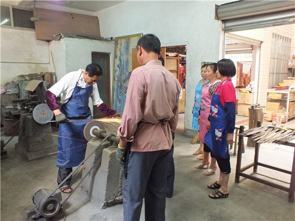 福建是春秋战国时期铸剑大师欧冶子铸剑之地。唐朝末年,闽王王审知为确保实现自己的政治主张和开发疆土,招贤纳士,广造兵器,实现坚甲利刃,富国强兵。相传闽王曾在检阅三军时,解下自身佩带的青锋宝剑,摆于剑台之上,焚香三拜,只见宝剑每拜必动,闽王宝剑因此闻名天下。 明溪县雪峰山是“闽王牌”宝剑系列的铸造之地,当地宝剑厂选取优质钢材,引来雪峰山涧的清泉,采用传统锻造技艺和先进冶金技术相结合的方法精心冶铸,终于成功铸出了“闽王”宝剑,使失传多年的闽王宝剑重放光彩,新铸宝剑定名为“闽王牌”,并成功注册了商标。 “闽王牌”宝剑系列产品规格多样,造型不一,长短兼备,单双俱全,轻重有别,刚柔并济,青光逼人,可作镇宅之宝,亦是健身之伴,既可作为高档工艺品收藏,也是高雅的馈赠礼品。因而被明溪人誉为明溪“三宝”之一,并畅销于全国各地及日本、新加坡和东南亚、欧美等国家和地区。2002年,“闽王牌”宝剑被三明市评为“知名商标”。2017年1月,宝剑锻造技艺(明溪)入选福建省第四批非物质文化遗产扩展名录。(三明市委宣传部 供图) 代表性传承人赖庆发正在明溪县宝剑厂生产车间制作闽王牌宝剑 代表性传承人赖庆发在明溪县宝剑厂生产车间传授闽王宝剑传统制作技艺 代表性传承人赖庆发正在明溪县宝剑厂生产车间制作闽王牌宝剑 闽王牌宝剑系列产品展示图片 闽王牌宝剑系列产品展示图片 |
