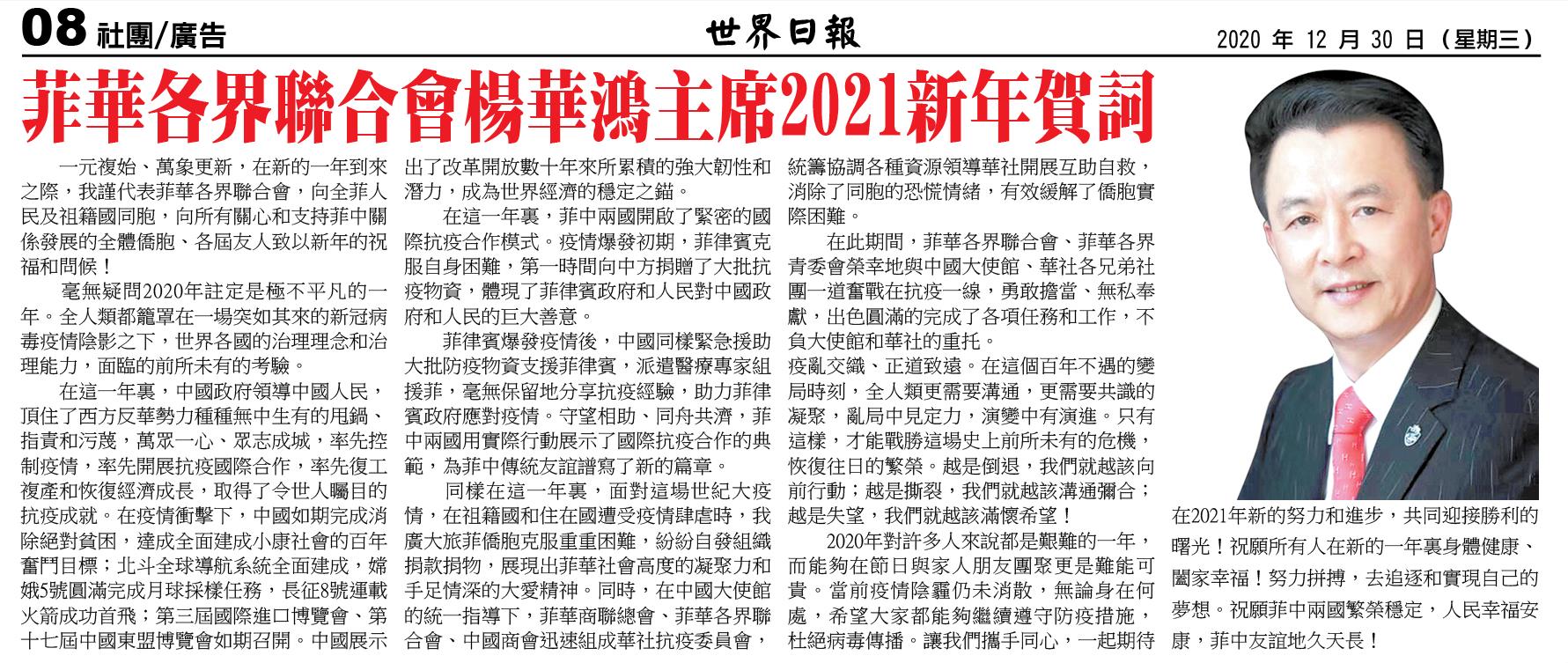 热烈祝贺吴仲振荣膺菲律宾《世界日报》社长